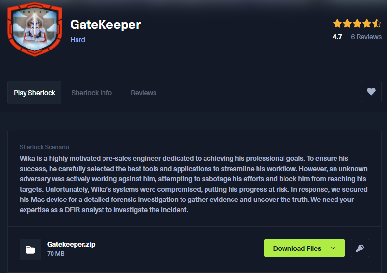 Wika est un ingĂ©nieur avant-vente très motivĂ© qui s’efforce d’atteindre ses objectifs professionnels. Pour assurer sa rĂ©ussite, il a soigneusement sĂ©lectionnĂ© les meilleurs outils et applications afin de rationaliser son flux de travail. Cependant, un adversaire inconnu travaillait activement contre lui, tentant de saboter ses efforts et de l’empĂŞcher d’atteindre ses objectifs. Malheureusement, les systèmes de Wika ont Ă©tĂ© compromis, mettant en pĂ©ril ses progrès. En rĂ©ponse Ă cette situation, nous avons mis en sĂ©curitĂ© son Mac afin de mener une enquĂŞte judiciaire dĂ©taillĂ©e visant Ă recueillir des preuves et Ă dĂ©couvrir la vĂ©ritĂ©. Nous avons besoin de votre expertise en tant qu’analyste DFIR pour enquĂŞter sur l’incident.