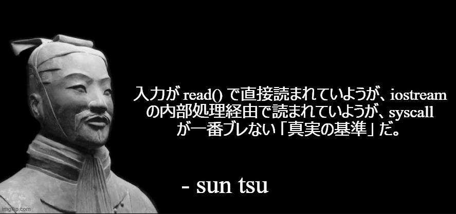 read(0, buf, ...)を叩いているわけじゃなくて、libstdc++ の iostream を通して読んでいる。その後に「バリデータが欲しい形」で(ptr, len)のペアが具体化される。