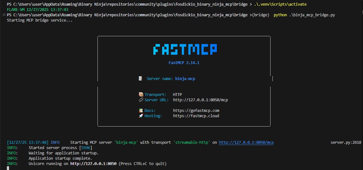 .\binja_mcp_bridge.py(FastMCP bridge service) running