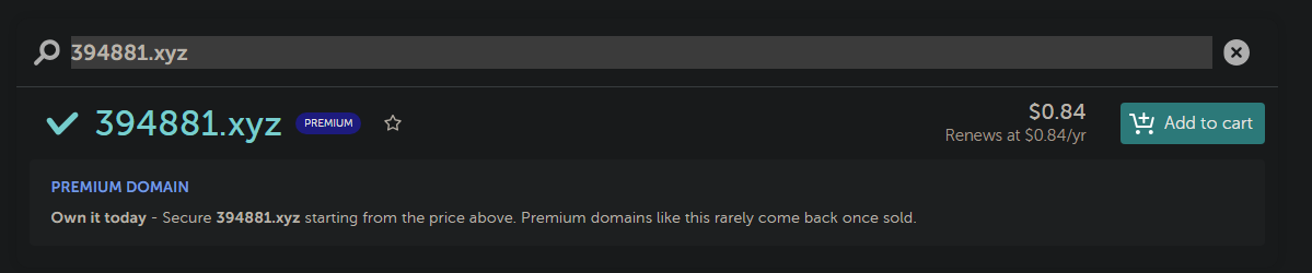 To pay only $0.85 per year for a domain (with Whois privacy) you can buy the cheap [6to9-digit.xyz] (cf. 1.111B Class .xyz domains) like this one on Namecheap: