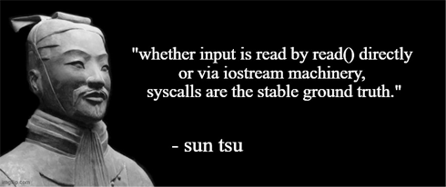 read(0, buf, ...)in a clean way. It goes through libstdc++ iostreams, then later materializes exactly what the validator needs: a(ptr, len)pair.